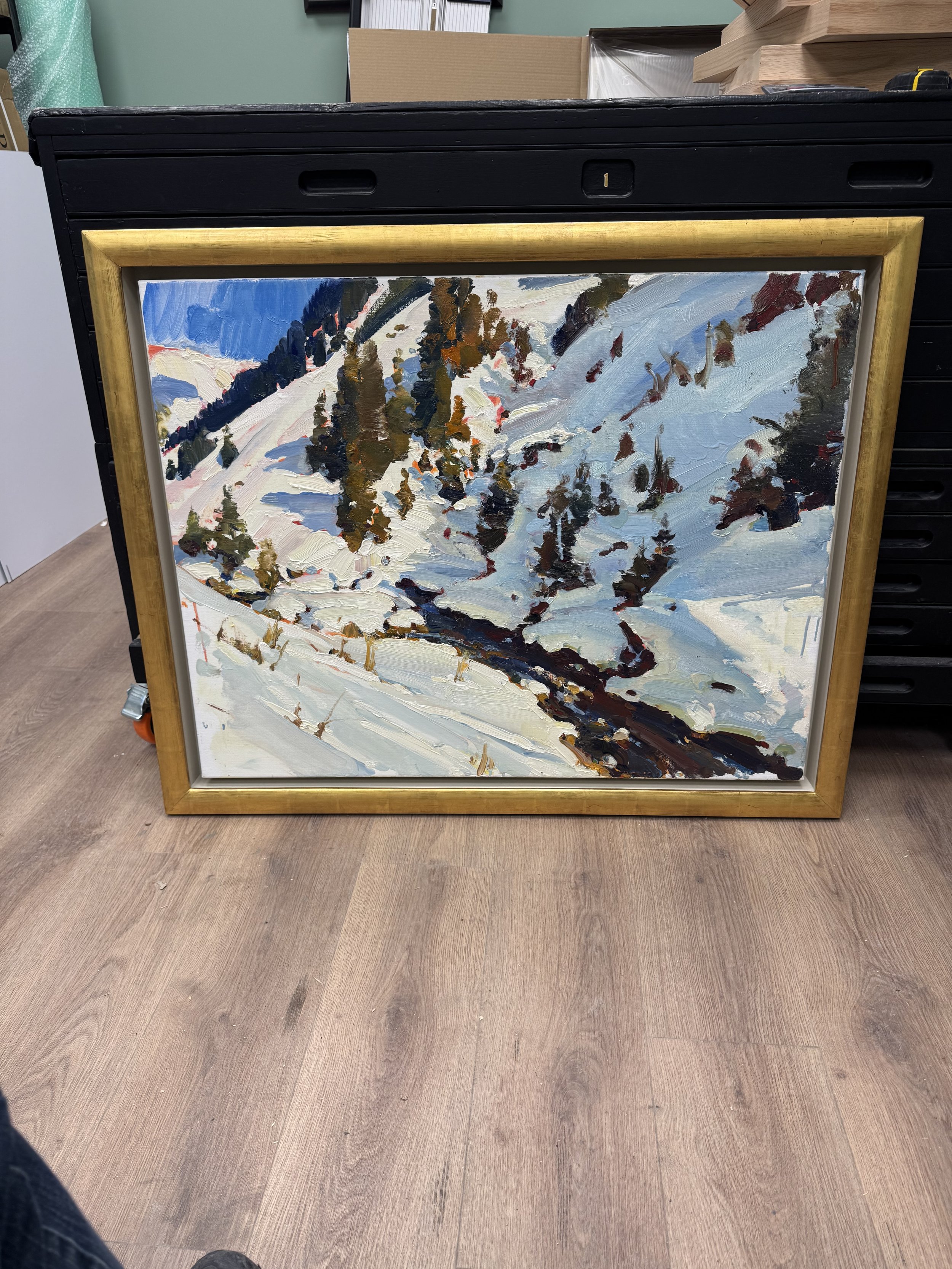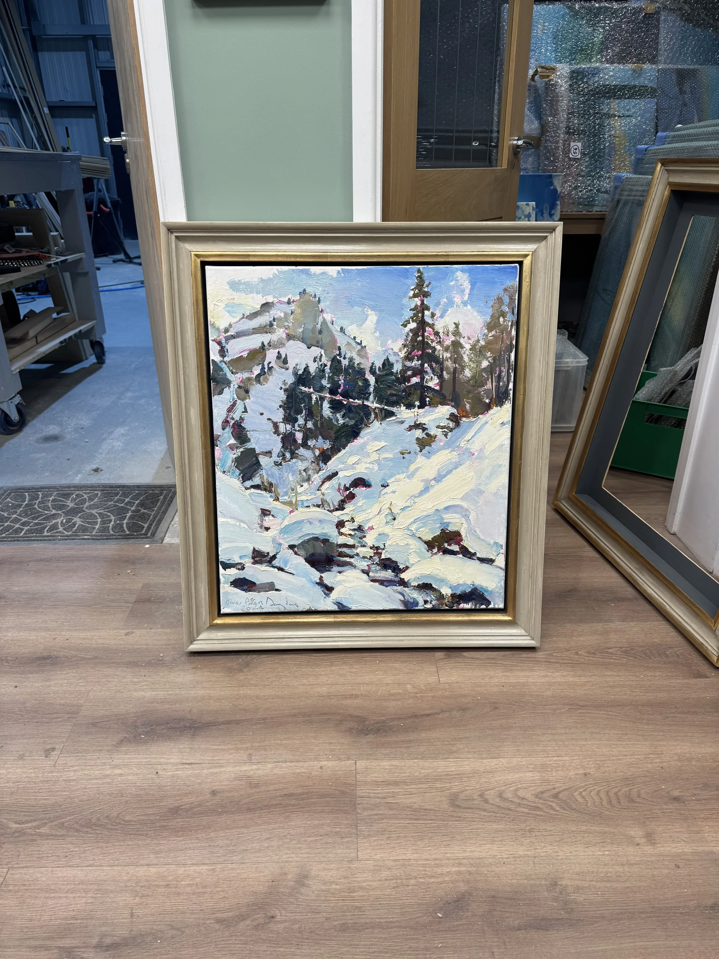 OVER 40 FRAMES CREATED FOR OLIVER’S SWITZERLAND EXHIBITION. WE PRODUCED A RANGE OF ‘READY MADE’ FRAMES FOR THE ARTIST TO FIT THEIR OWN WORK ALONGSIDE A SELECTION OF CUSTOM TRAY FRAMES WHICH WERE FULLY ASSEMBLED HERE IN OUR WORKSHOPS.